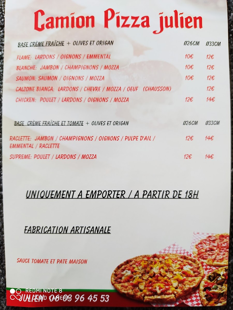 Welcome to Camion Pizza Julien, where pizza passion meets perfection at 2111 Rte de Nice, 83400 Hyères, France. This delightful takeaway offers a menu filled with exquisite, thin-crust pizzas crafted by the amiable pizzaïolo, Julien. Revel in the warm and welcoming atmosphere that keeps loyal customers coming back for more.